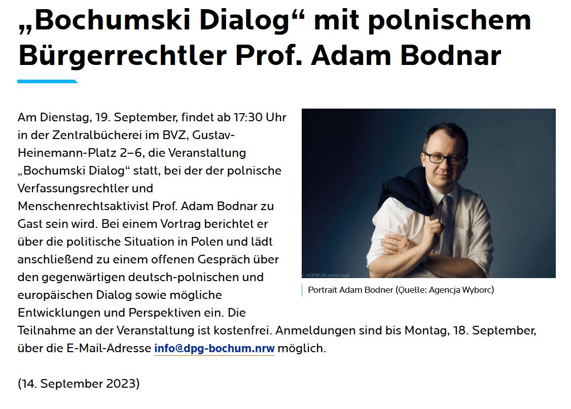 BOCHUMSKI DIALOG mit wichtigstem polnischem Bürgerrechtler Prof. ADAM BODNAR